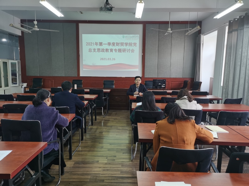 2021年3月26日下午财贸公司党总支在1310会议室召开思政教育专题研讨会,会议由孟大伟同志主持,领导班子成员、全体坐班人员和专业负责人参加了会议。会上大家就“建党一百周年学党史,巩固意识形态教育成效”展开讨论,并依次发言。讨论气氛热烈,大家各抒己见,为财贸公司今后如何开展党史教育,如何巩固意识形态教育成效提出了有效的建议。