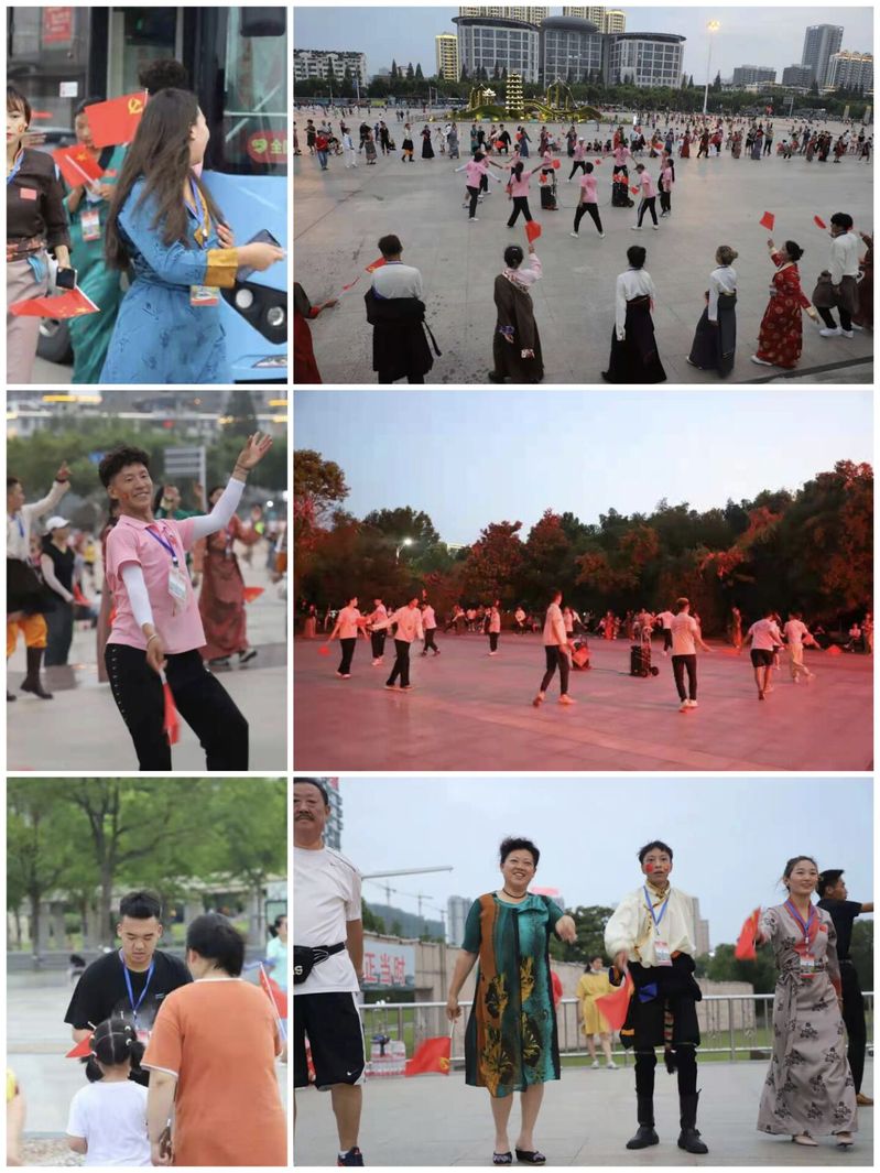 活动现场布置完成后,我们的现场工作人员给周围市民奉上小国旗、党旗、国旗贴纸等物品,并邀请他们一起参加活动。主持人首先代表大家宣读对党的祝福词,大家一起举旗欢呼,爱国热情溢于言表。随后,由藏族同学带来的民族舞蹈将活动推上高潮。多姿多彩、新奇特色的民族舞蹈吸引了一波又一波的观众融入其中,广大市民与同学们一起载歌载舞,共同庆祝党的百岁华诞。