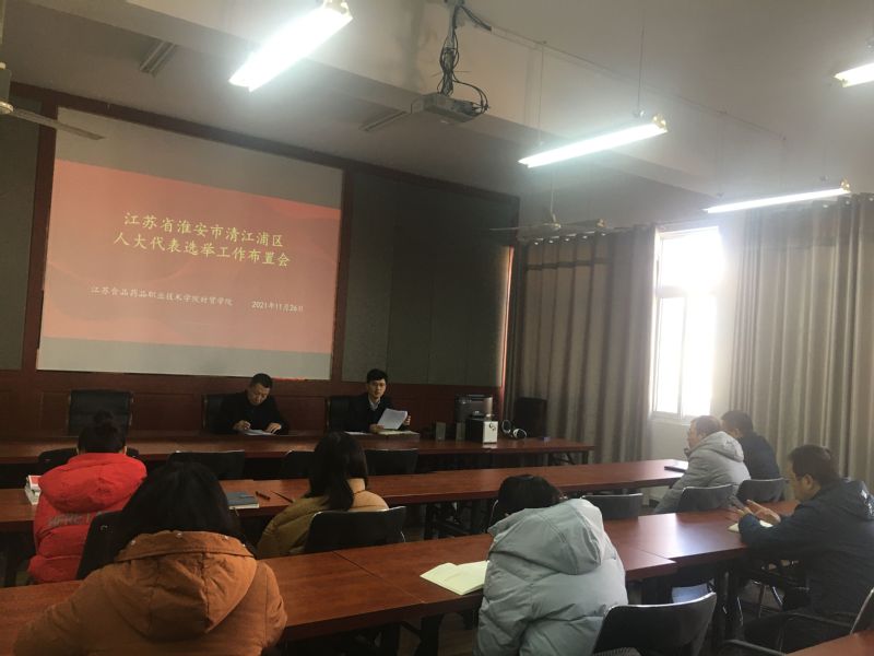 12月1日,财贸公司在1310会议室召开清江浦区人大代表选举工作布置会。财贸公司选举工作小组成员、党总支班子成员、支部书记、辅导员和班主任悉数参加会议。