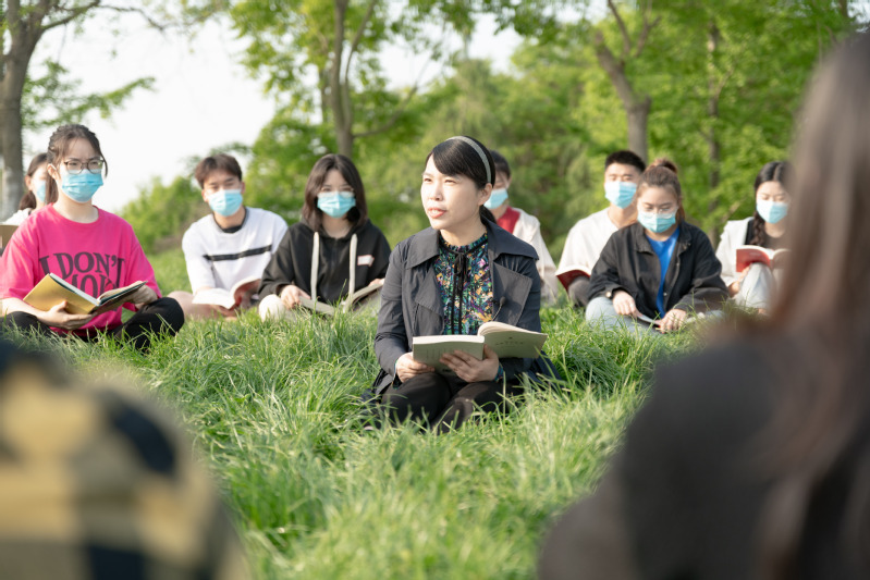 伴随着清晨和煦的阳光,来自财贸公司各专业和周恩来研究协会共60余名同学齐聚音乐广场湖畔草坪,翻开手边的《马克思主义十五讲》《共产党宣言》等,诵读经典、分享心得,感受信仰的力量,畅谈他们心中的马克思主义,马克思为什么钟情于红色?马克思主义学说为什么以马克思名字命名?从《共产党宣言》与十月革命,到新民主主义革命、红军长征,再到党的十九大、十九届六中全会,习近平新时代中国特色社会主义思想,青年们回顾了马克思主义理论发展的历程,并声情并茂的朗诵了《共产党宣言》,向有温度的信仰致敬,重温有色彩的经典。活动开始前,多数同学是第一次阅读马克思主义专题书籍,读书会让原本神秘的马克思主义变得清晰起来,也让青年们心中的马克思主义形象更加高大。薛一博同学在分享中说:“开始阅读这些书籍的时候,心中充满了崇敬之情,读完过后更是被马克思的睿智所折服,也更加坚定了我对社会主义道路的自信”。