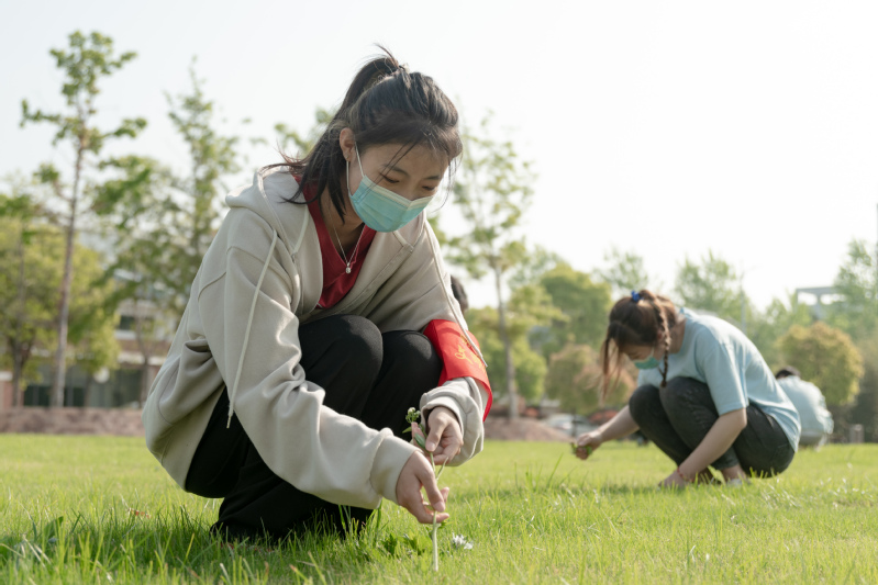 “纸上得来终觉浅,绝知此事要躬行”,习近平总书记曾说:“社会主义是干出来的,新时代也是干出来的”,随着课堂的深入,同学们纷纷表示收获十分丰富,作为社会主义接班人的使命感与责任感更强了。这时,一节“草坪上的劳动课”又悄然开始。史建梅、孔月红两位老师介绍了马克思主义劳动观的基本观点,以及劳动教育对于青年员工成长的意义,教育青年劳动不但创造了人的物质生活,也充盈着人的精神世界,使人得以成长。随后,同学们围绕校园进行环境清理,拔除草坪上的杂草,大家用自己的双手,用实干践行马克思主义劳动观,在劳动中寻找自己的价值。南太加同学说:“作为在校老员工,美丽校园就是我们的家,我们都是校园建设的主人翁,我们愿意将这种别开生面的劳动课践行下去,养成好的劳动观,筑牢全心全意为人民服务的思想根基”。