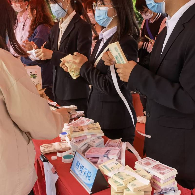 2022年5月8日上午,在“2022年职业教育活动周启动仪式”上,财贸公司师生,展示了“花式点钞”方法,引起全校师生的围观和学习,将财经商贸类的特色技能推广开来。