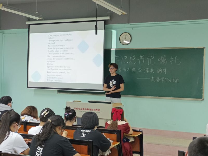 该院还组成了由五位优秀员工组成的“讲师团”, 结合自已的学习经验,分享了复习迎考方法和成功经验。养检202王子晴与电本201胡逸轩两位同学向大家推荐观摩原版英文影视作品,可以提高英语口语水平;电本211班潘子盈同学分享英语阅读理解的解题思路,带着具体问题在原文找答案,会达到事半功倍的效果;作文翻译方面,电本201陈颖同学提出“积薄而厚,聚少而多为”,在平时要多积累一些好的句型、高级词汇、作文模板等,写作时就会得心应手;单词记忆方面,电本201周子怡同学分享了 “可以利用单词联想、词根词缀、图片记忆、APP打卡”等方法来记单词。