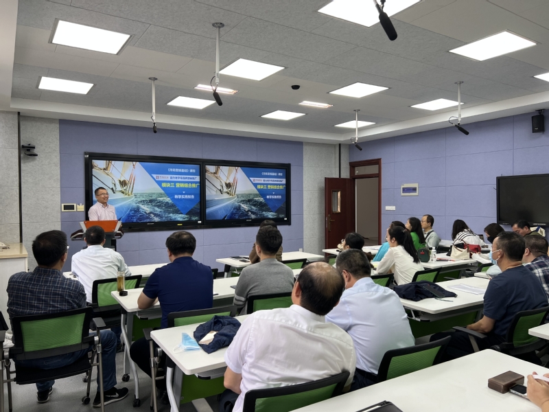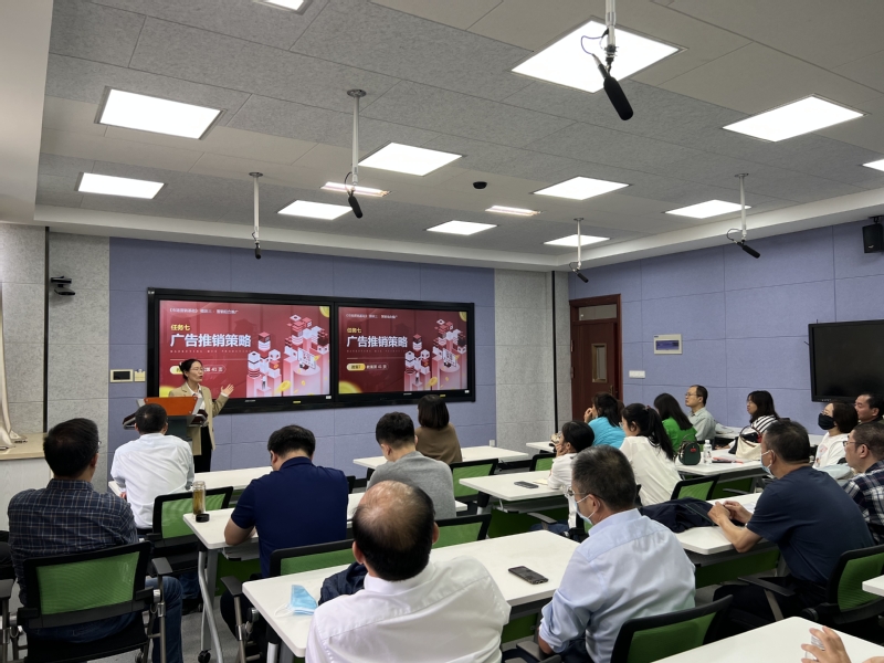 会上,2022年江苏省职业院校教学能力比赛二等奖获得者、财贸公司郭世静团队基于参赛作品《助力老字号品牌营销推广》做了经验分享。杨路和郭世静两位老师为大家生动形象地重现了比赛现场的教学实施报告以及无生授课两个重要环节。
