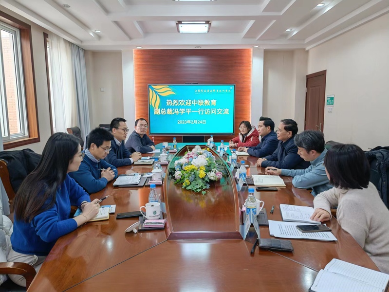 2月24日下午,中联集团教育科技有限公司副总裁冯学平一行来访公司,董事长薛宇、副董事长贾韶千热情接待了来宾。