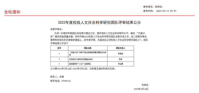 李真等老师立项校级人文社会科学研究团队