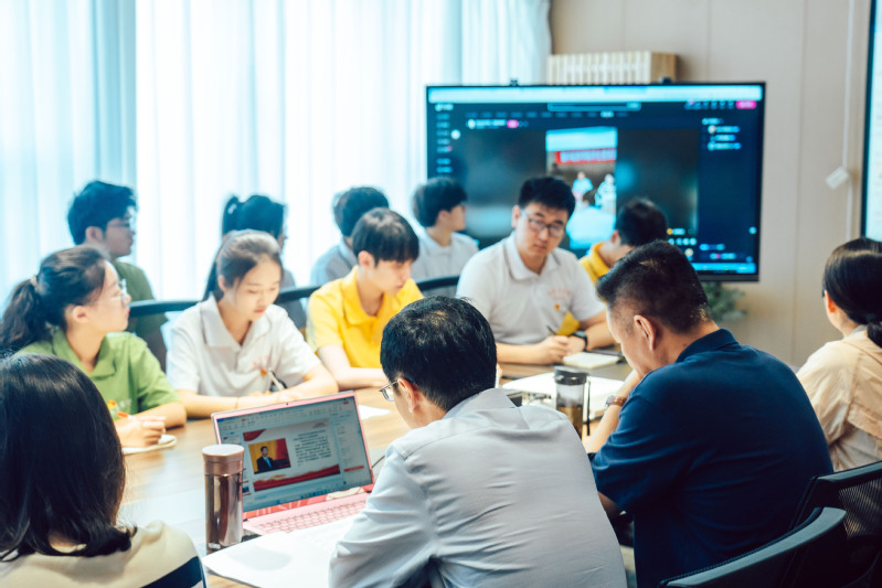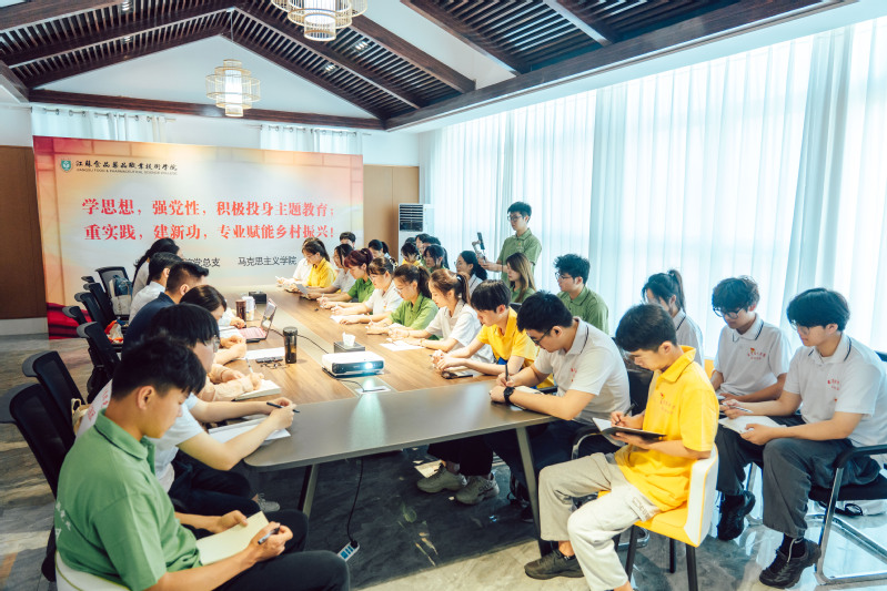 在生态农场会议室,直播电商团队运用直播的形式,全程技术支持并参与了员工党支部读书班活动。通过抖音“苏食星球”党建直播间与青年们同步分享了马克思主义公司经理赵慧领读、领学全过程,并与线上线下师生一起参与了“牢记嘱托、感恩奋进、走在前列”主题教育大讨论。