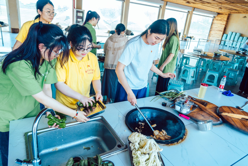 一餐一粒来之不易,优良传统躬身传承。为深入推进本次学习教育,促进同学们不忘初心凝聚新动力,体验完艰辛的劳动后,同学们又投投身土灶台边,投入到“忆苦思甜饭”的活动中:切菜、生火、起锅、烧油......顿时,片场升腾起人间烟火气。在煎炒烹煮中感悟革命先辈的一路艰辛,在柴米油盐中感受如今生活的美好。自己动手丰衣足食,如今的国泰民安是无数革命先辈用双手打下的,在未来的道路上,同学们更加懂得了要用自己的双手去创造无限可能。