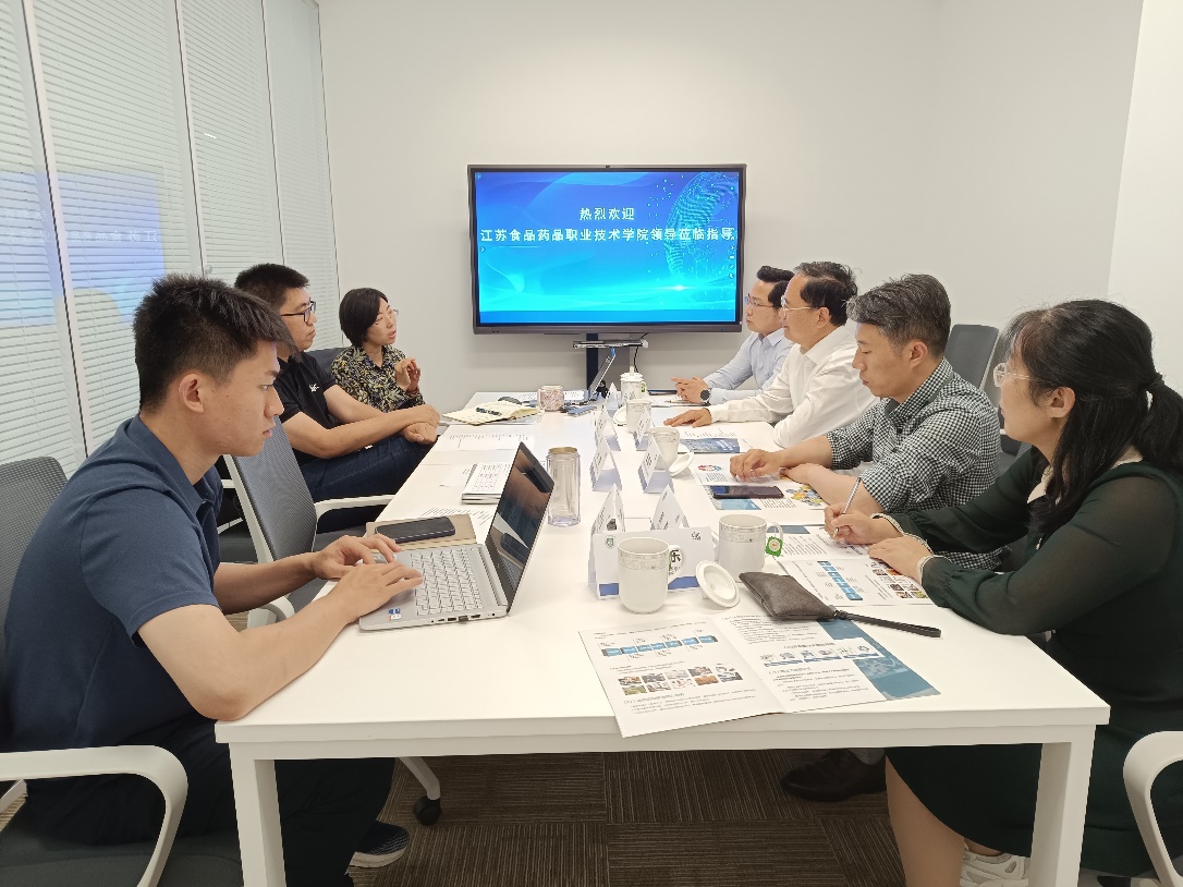 与会期间,董事长薛宇与新道科技副总裁田鹏围绕数智产业公司开展深入洽谈,双方就打造苏食院人才培养特色,实现多专业融合的数智全链条的合作达成初步共识。