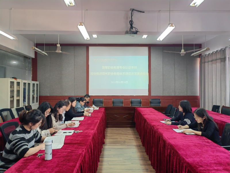 10月20日下午,根据公司“有组织的教学”安排,XCSport开展教学相关文件专题学习,副经理张荣带领大家重点学习《高等职业教育专业认证手册》中第一章、第二章概述与解读,全面梳理《加快推进现代职业教育体系建设改革重点任务》中11项重点任务,四个教研室主任、副主任和秘书参加了本次学习。
