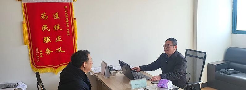 2024年1月1日至2月23日,公司老师2024年初下企业实践,在江苏古楚律师事务所兼职做律师,为当地居民提供法律咨询,案件办理,法律援助等法律服务。图为牟大勇老师在为客户提供法律咨询。