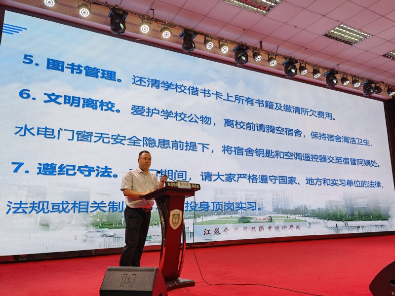 会上,公司经理张荣、党总支副书记赵治瑾、副经理肖芸和就业专员徐伟老师,分别从顶岗实习政策解读、实习期间班级管理事务、毕业条件和具体要求以及就业协议签订和档案派遣等方面,为同学们指明了顶岗实习的方向,明确了实习期间的具体任务。
