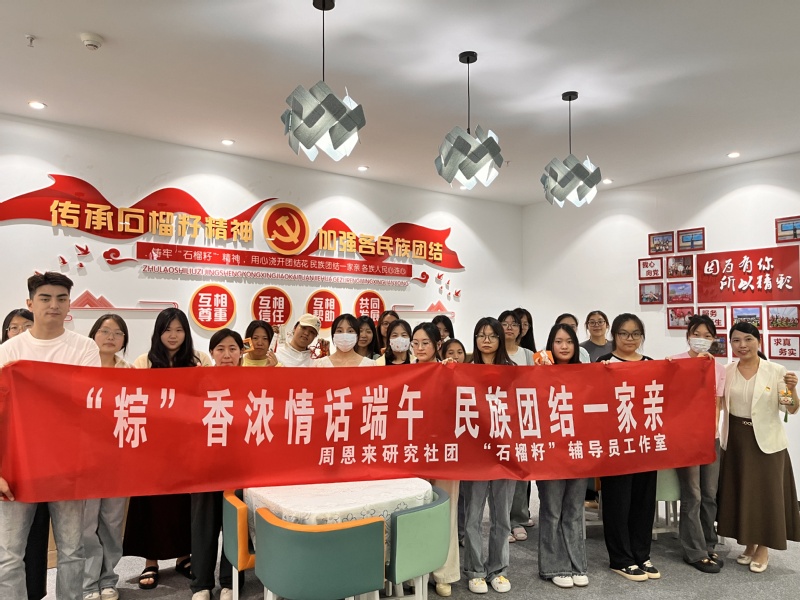 6月7日中午,数字经济公司党总支组织周恩来研究社团和“石榴籽”朋辈支持名辅导员工作室成员与公司少数民族同学代表,在校“药食·同源”同心教育实践基地开展了“‘粽’香浓情话端午 民族团结一家亲”主题活动。
