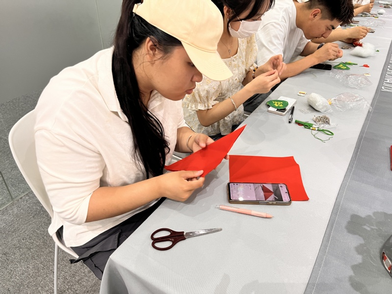 手工环节,大家DIY艾草香包和开展剪纸大比拼,每一道工序、每一个环节都流露出大家对端午节的深刻解读。