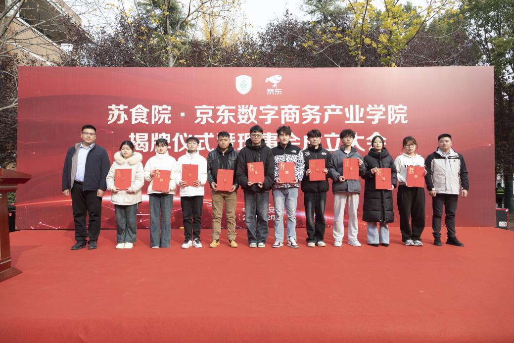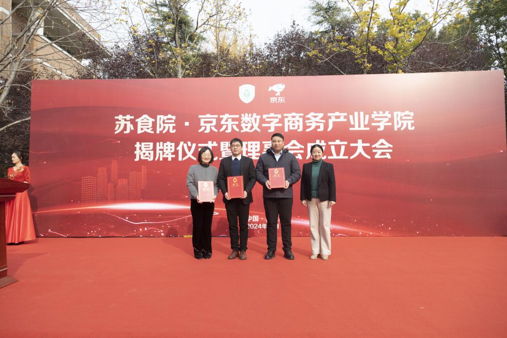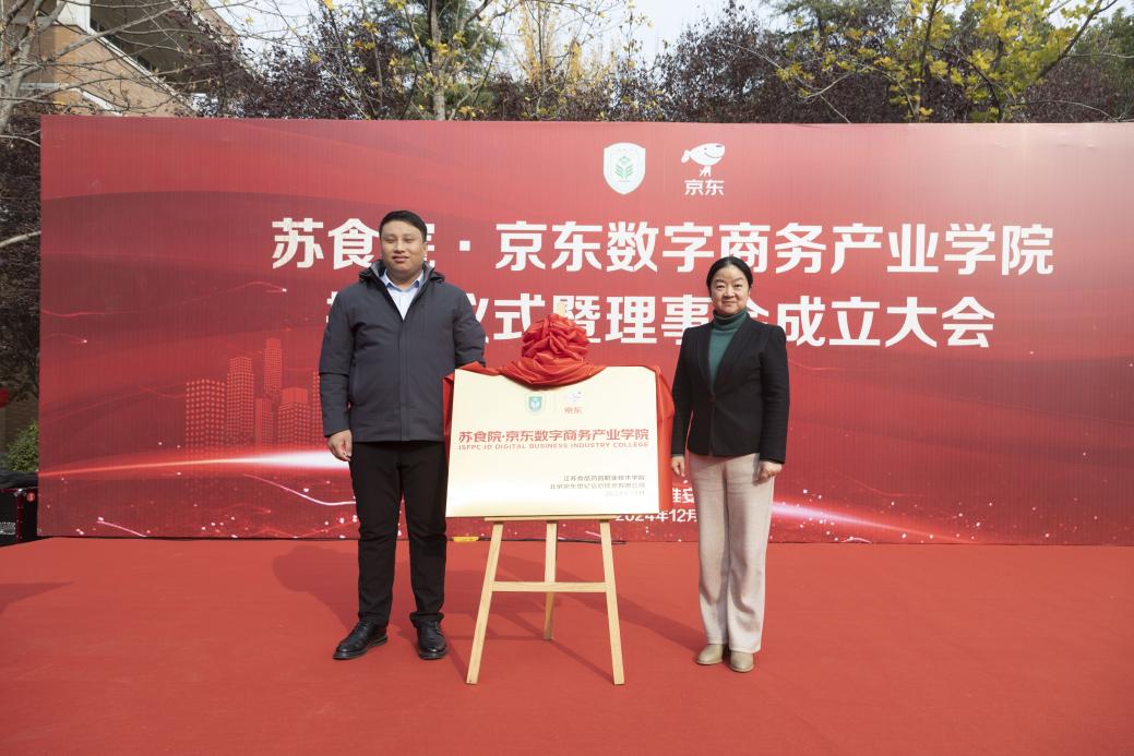 随后,校企双方领导共同为“苏食院·京东数字商务产业公司”揭牌,不仅标志着产业公司的正式成立,更象征着公司与京东携手并进、共谋发展的新篇章正式开启!