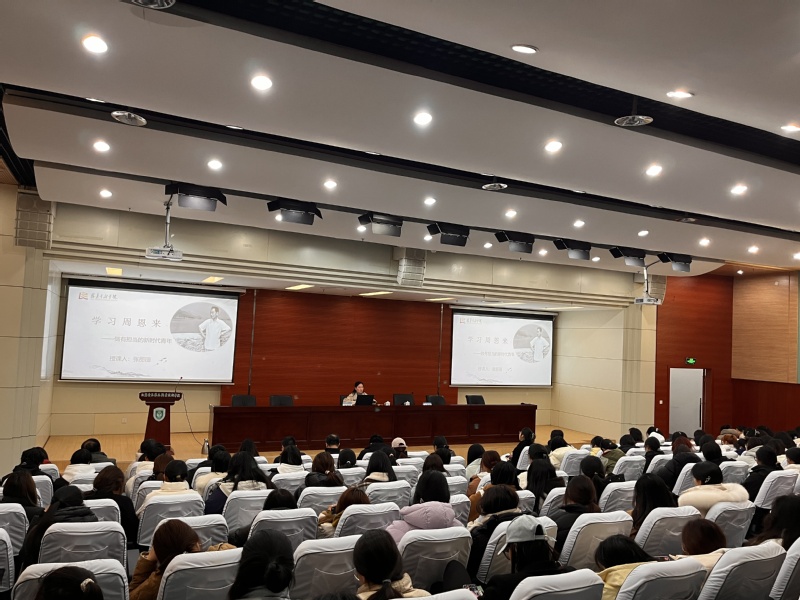 活动邀请了恩来干部公司培训保障部牵头人、团支部书记张丽丽为与会师生讲授了“学习周恩来——做有担当的新时代青年”专题讲座。张丽丽从一个亲切的称谓、一张厚重的名片、一面锃亮的镜子三个方面,结合影像资料,深情讲述了周总理光荣而伟大的一生。窗外春寒料峭,室内暖意融融。正如习近平总书记在纪念周恩来同志诞辰120周年座谈会上讲话中所提及的:“周恩来,这是一个光荣的名字、不朽的名字。每当我们提起这个名字就感到很温暖、很自豪。”