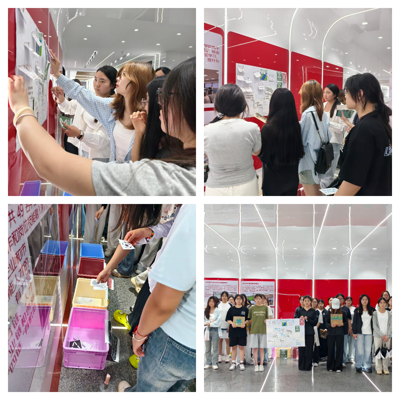 互动体验环节,社员们通过所学、所感、所悟,现场筛选、分拣、投放自己手中垃圾卡片入筐,参与者举手投足间引来了师生们的驻足观看和拍手称赞。